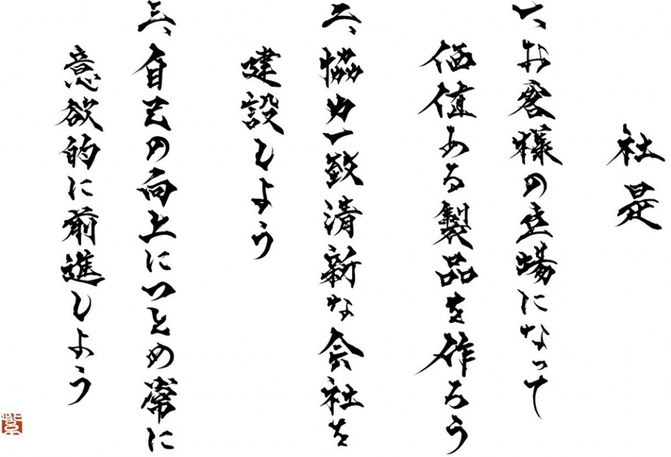 「社是」とは、会社の基本方針、スローガンのようなものです。