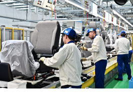 自動車用シートは、シートフレーム、ウレタン発泡、カバー縫製、組立などの一貫生産を行っています。